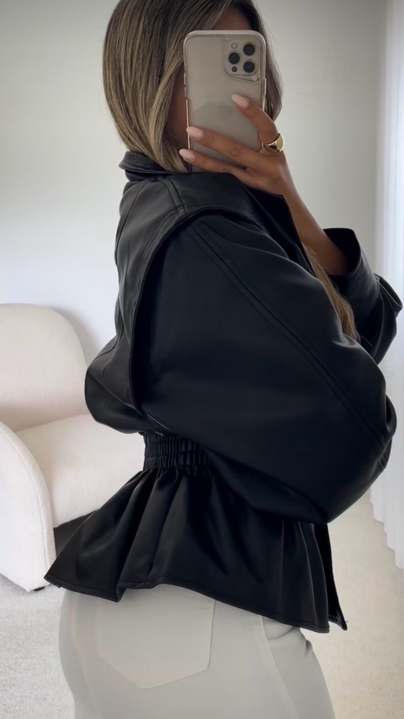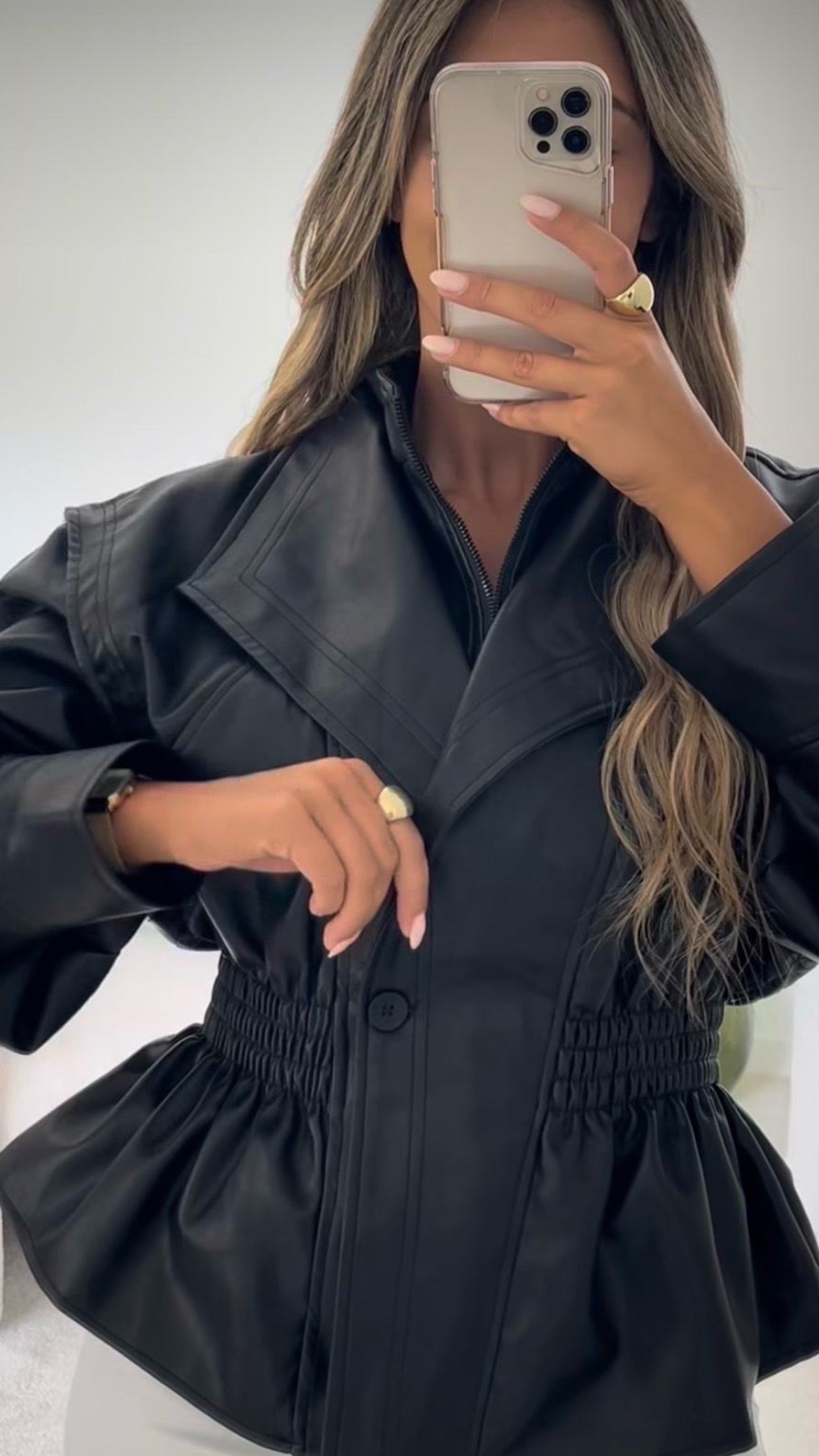 Το νέο μαύρο δερματίνη τζάκετ με τέλεια εφαρμογή και θηλυκή γραμμή ήρθε για να απογειώσει το look σου.